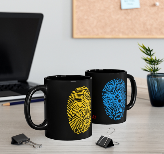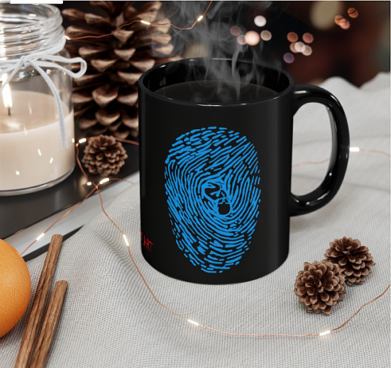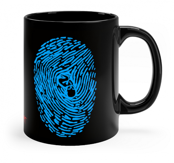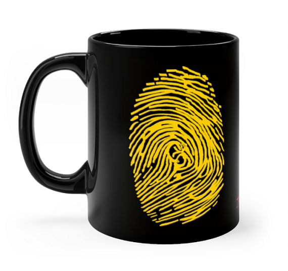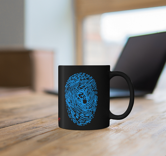 If you focus your eye on the middle of the image printed on the 11 oz mug, you might notice a small embryo hidden in the grooves of the fingerprint.